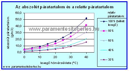 A levegő páratartalma relatív: a hőmérséklettől függ, hogy az adott °C mellett hány gramm vizet tud magában tartani 1 m3 levegő, ezt fejezzük ki százalékban: 100%-nak felel meg, ha a maximális vízmennyiséget tartja magában, ez a telített levegő. A telített levegő tehát pára formájában több vizet már nem tud befogadni. Ha növelni próbálnánk a páratartalmat, akkor a többlet már cseppfolyós halmazállapotban kiválna. A relatív páratartalom azt adja meg, hogy az adott hőmérsékletű levegő a telített állapothoz képest hány százalék vizet tartalmaz.