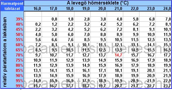 A harmatpontnál alacsonyabb hőmérsékletű felületeken csapódik ki a víz, a harmatpont relatív páratartalomtól és a levegő hőfokától függően változik. A korszerű központi fűtés gyorsabban felfűti a levegőt viszont a falak hidegebbek maradnak (így a harmatpont alatt lehetnek). A harmatpont táblázatból jól látszik, hogy például egy 70%-os páratartalmú, 21 fokra fűtött lakásban már a 14,7 fokos vagy annál hidegebb falon vagy ablakon is megjelenik a víz. Ugyanakkor ha ebben a 22 fokos lakásban a páratartalmat sikerült 45%-ra leszorítani, akkor 8,1 foknál melegebb falon nem ül ki a víz. A hőhídon megjelenő víz is azért alakul ki, mert a hőhíd által bevezetett hideg miatt a fal ezen rész a harmatpont alá hűl.
